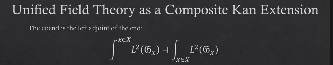 There is a sense in which a functor resembling “taking the coend” is left adjoint to a functor that itself has a further right adjoint, and this latter functor resembles “taking an end.” Working this out required some effort a couple of years ago, and I can elaborate if you are interested. I suspect the author of the video does not know the definition of coend — for instance, what is called “a coend” there does not even typecheck (there is no dependence on two ’s in the integral) — and I would be more inclined to interpret it as a directed integral. Which, probably, they do not know the proper definition of either...