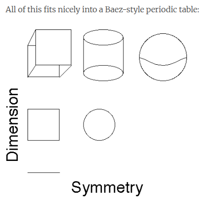 I'm thinking about a "periodic table of string diagrams" that is to do with diagrams of n-manifolds inside of an (n+k)-dimensional manifold (probably a sphere)