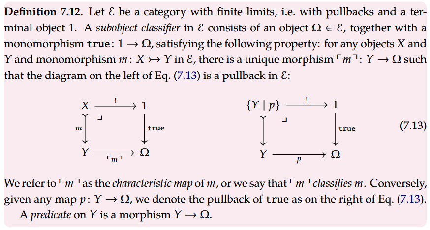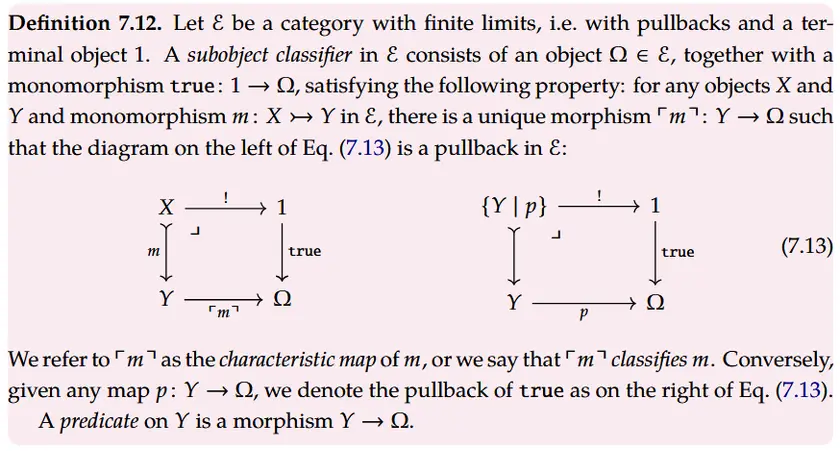 In my explanations, I've been leaning on the more general definition of elementary topos as a crutch. It simply requires our category: