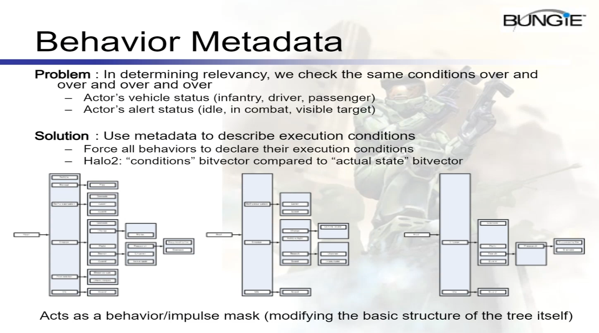 The name "behavior tree" is still a game developer term of art, it doesn't necessarily match the wikipedia definition. For example, in the original Halo 2 talk, "impluses" were "added" (really they were removed from the definition) to make small changes on the tree when unusual play states happened.