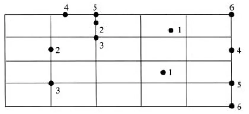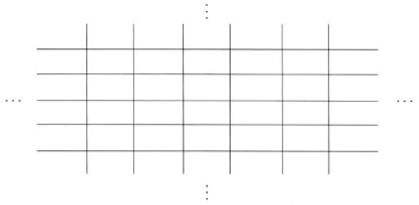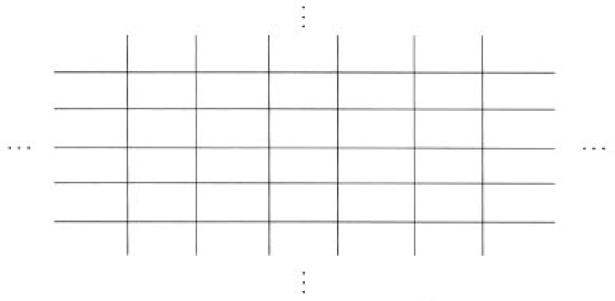 An infinite grid, its symmetries exist at intersections, and midpoints of lines: