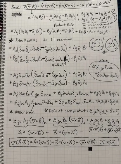 Arula Ratnukar is an impressive young neurobiologist who is studying Lagrangian mechanics just to improve her ability to write SF stories. She had a test on vector calculus and did this nice calculation.