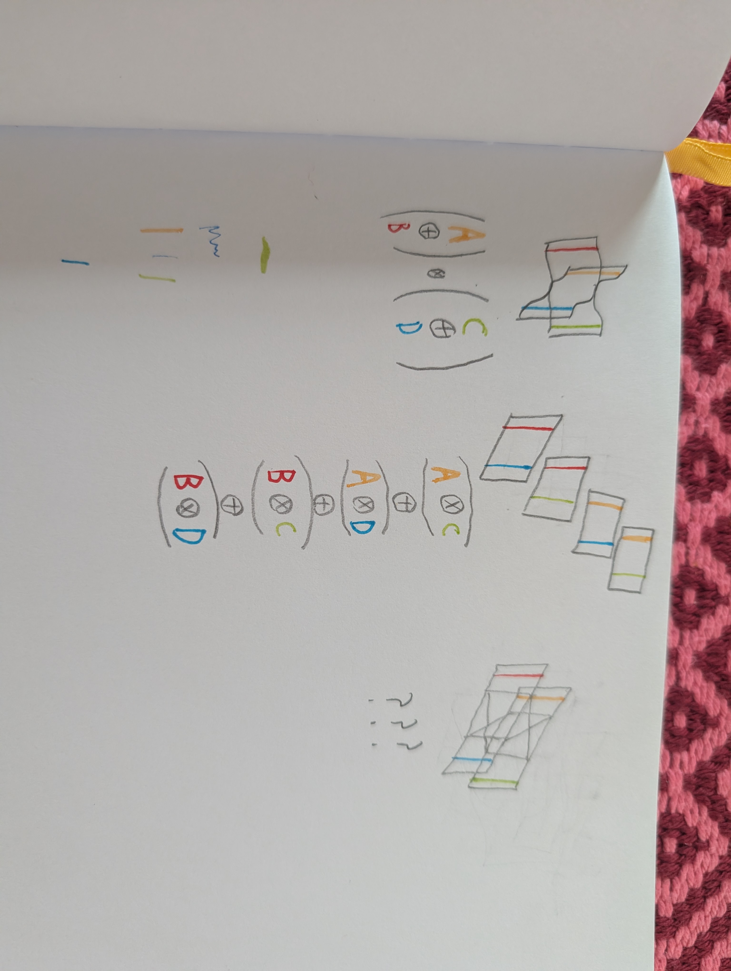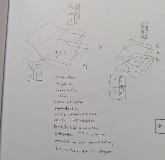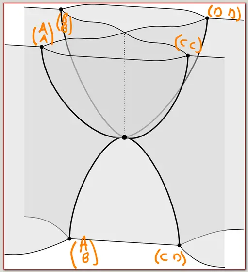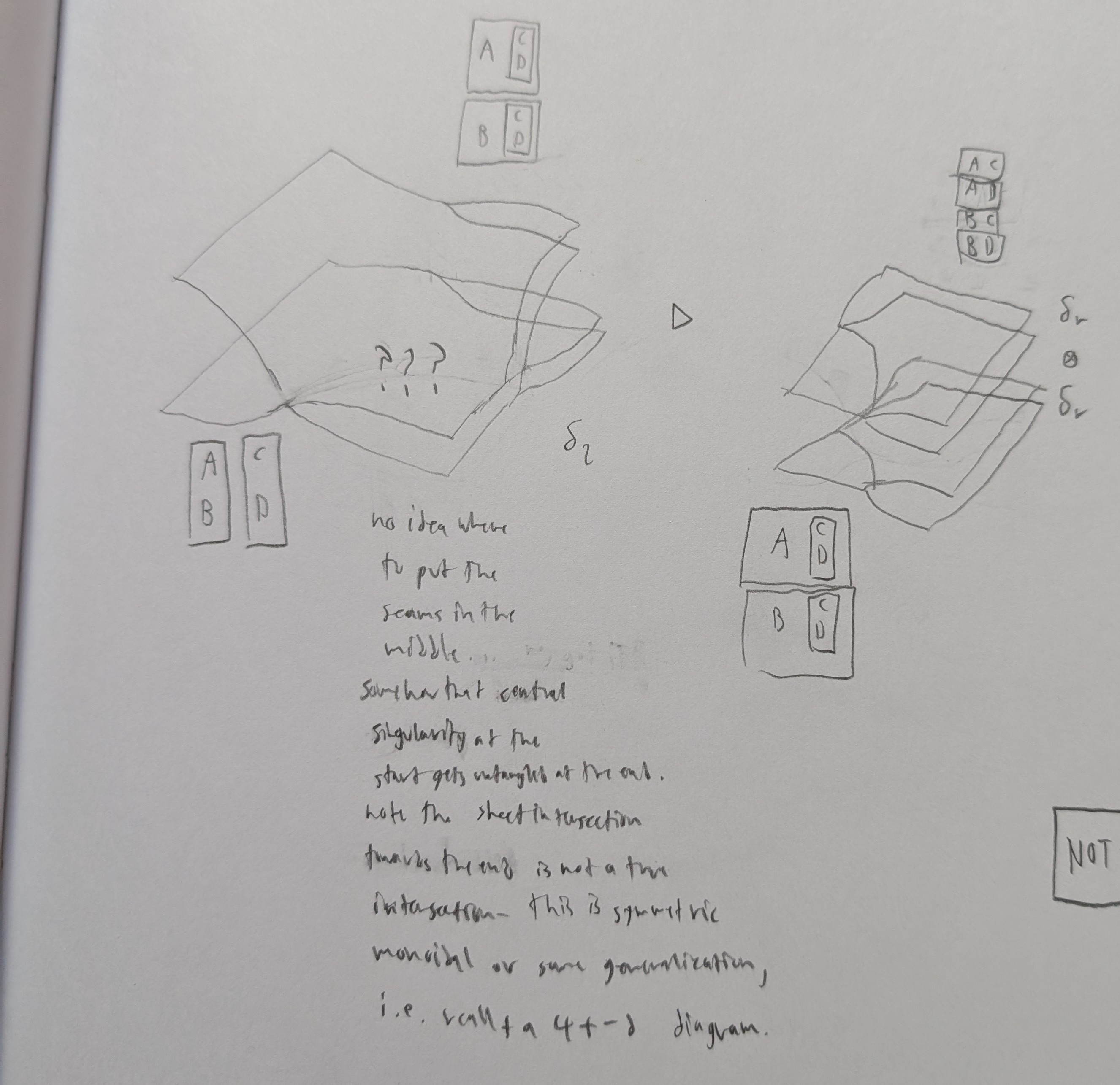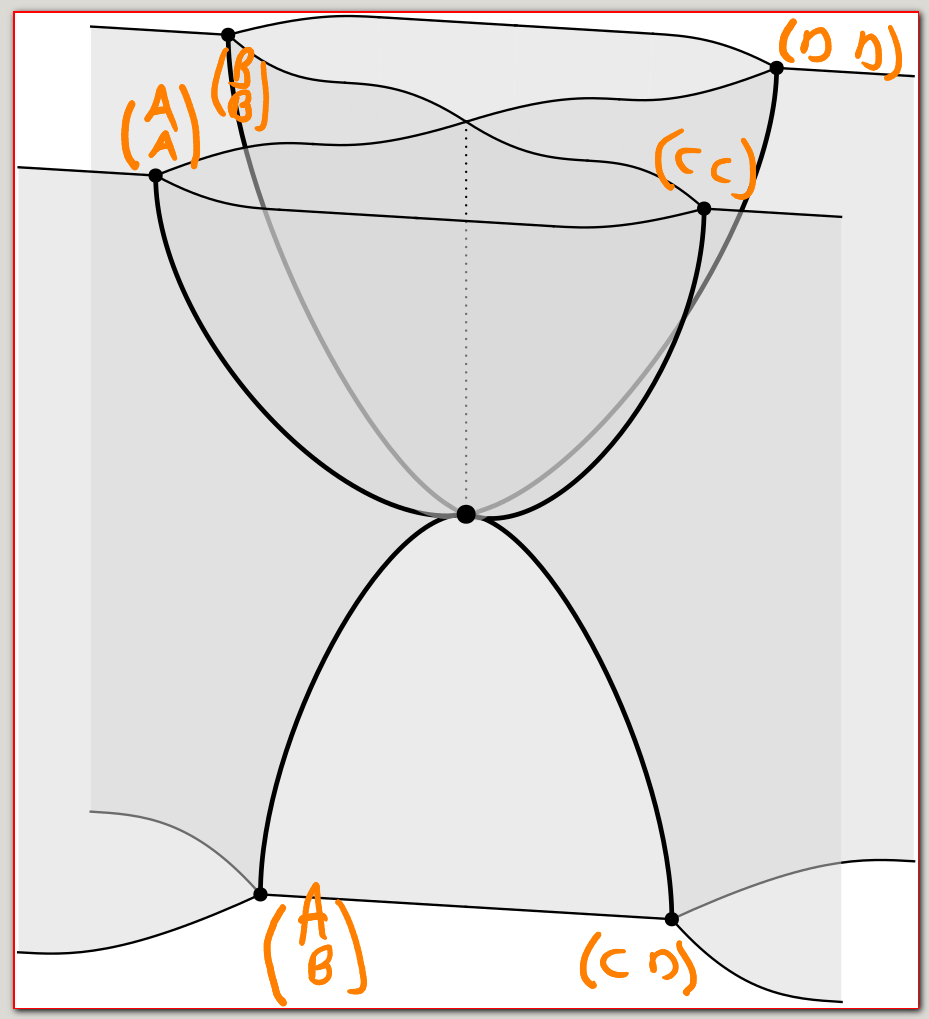 You could draw in colored wires here representing A,B,C,D, but I've left them out because I'm curious about the topology of the underlying surface. How do you draw the seams on it?