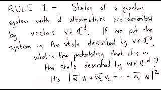 This is a crash course in quantum physics. I explain states and transition probabilities between states in quantum physics, and the basic rule for computing transition probabilities.